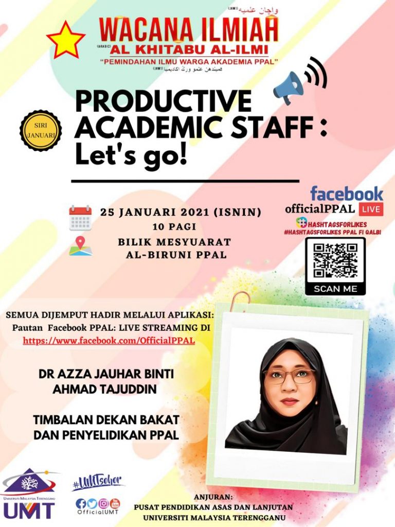 JEMPUTAN WACANA ILMIAH PPAL 2021 SIRI BULANAN KE SESI PEMINDAHAN ILMU WARGA AKADEMIA PPAL BIL.1/2021 Tarikh : 25 Januari 2021 (Isnin) Masa : 10.00 pagi – 12.00 tengahari Tempat : Bilik Mesyuarat Al-Biruni, PPAL Pembentang 1 : Dr. Azza Jauhar binti Ahmad Tajuddin Timb. Dekan (Bakat dan Penyelidikan), PPAL Tajuk : PRODUCTIVE ACADEMIC STAFF: Let’s […]
